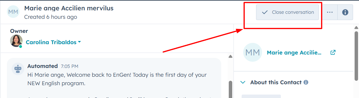 - Sometimes, the 'Close Conversation' button is not visible. If that happens, click on the three dots, and you'll find it there:
